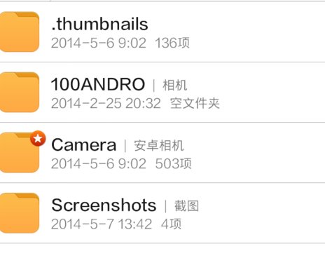 3、除此之外,还有一些隐藏文件夹,如.thumbnail 在DCIM的文件夹里面就有,是缩略图,但是经常清理不掉,所以就要手动清理,按一下菜单键。点击显示隐藏文件。